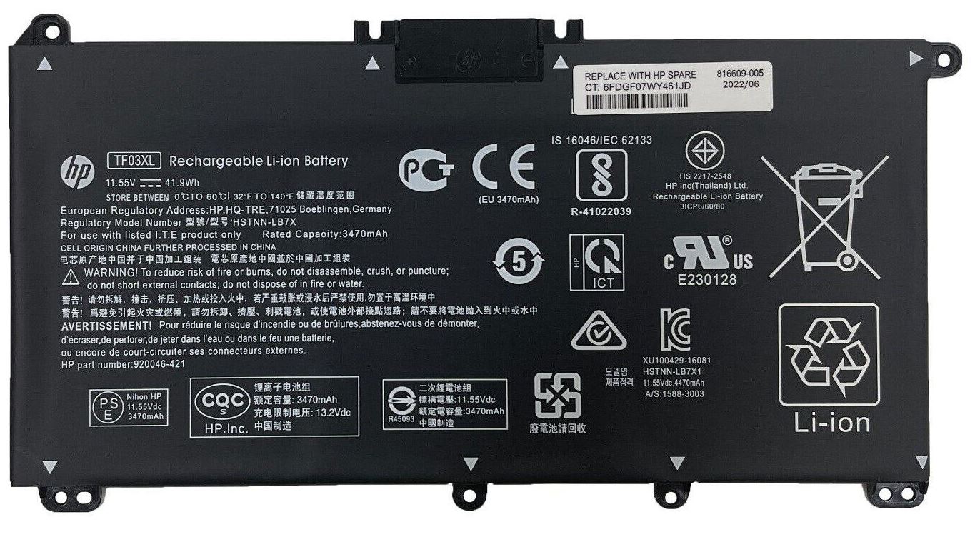 Hp Bateria TF03XL, Pavilion 14 15 17, 3 Celdas Producto de marca Original HP