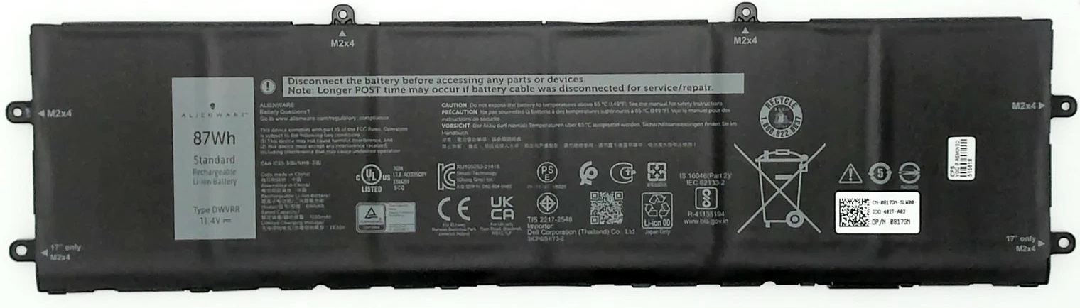 Dell Bateria DWVRR, Inspiron 817GN, 87wh Producto de marca Original DELL