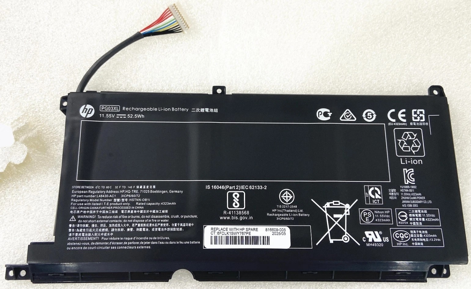 Hp Bateria PG03XL, Pavilion Gaming 15-dk, 52wh Producto de marca Original HP